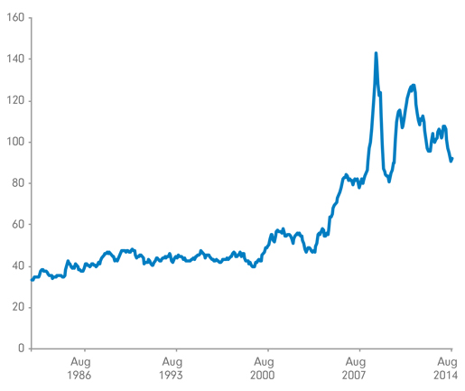 Information on commodity prices in this article largely comes from the Reserve Bank of Australia’s index of commodity prices. http://www.rba.gov.au/statistics/frequency/commodity-prices.html. Terms of trade and net national disposable income data comes from the Australian Bureau of Statistics release 5206.0 “Australian national accounts: National income, expenditure and product”. 3 September 2014. http://www.ausstats.abs.gov.au/ausstats/meisubs.nsf/0/4D57FAE7569ECB7FCA257D4700123D88/$File/52060_jun%202014.pdf. Share of iron ore and coal in exports comes from the ABS’ publication 5368.0. International trade in goods and services”. 4 September 2014. http://www.ausstats.abs.gov.au/ausstats/meisubs.nsf/0/004C390F1A733602CA257D480011B2CB/$File/53680_jul%202014.pdf