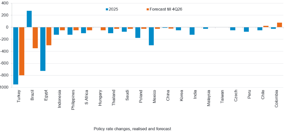 There are a confluence of factors making EM a particularly attractive asset class today. The valuation backdrop remains supportive, with potential for further re-rating in 2026 despite the rally in 2025. Similarly, the fundamental outlook looks attractive, supported by a superior fiscal backdrop, the potential for further rate cuts, and strong earnings growth potential across the region, underpinned by structural growth in tech, a constructive outlook for key commodities, and innovation in China.