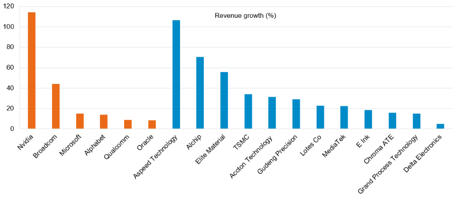 Many Taiwanese companies offer higher revenue growth but trade at cheaper multiples than US tech players