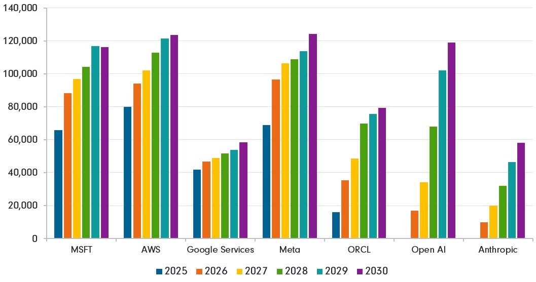 Figure 1: Consensus capex forecasts for selected hyperscalers and AI companies (US$m)