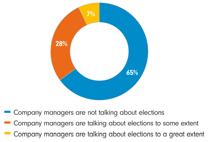 One of the survey’s most striking findings, however, is that most analysts (65 per cent) say their companies are not talking about elections at all.